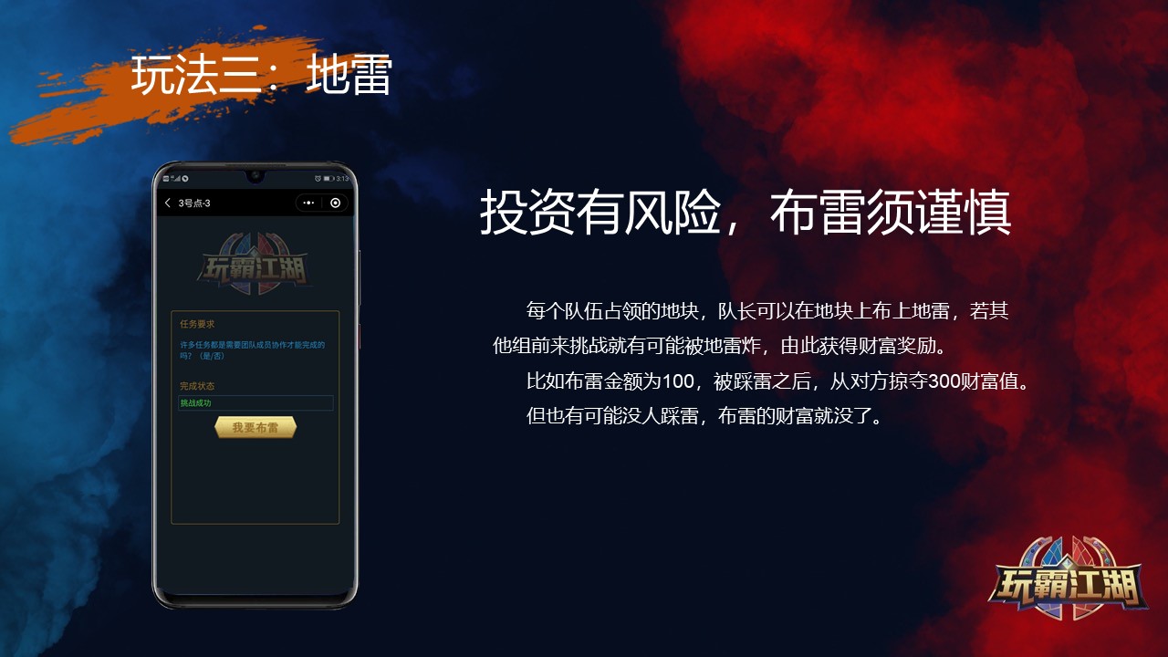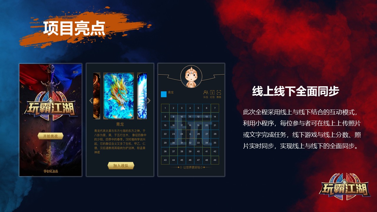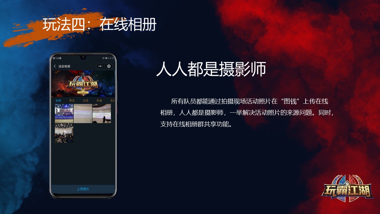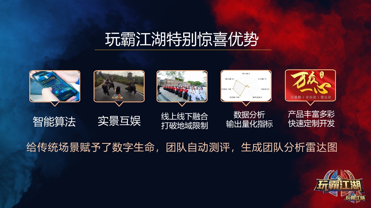 玩霸江湖是目前國內首款數字團建操作系統,基于玩霸平臺可以開發一系列企業定制化的主題團建體驗產品。為企業實現多元化團隊建設構建了一個可持續設計體驗是數字團建技術平臺。