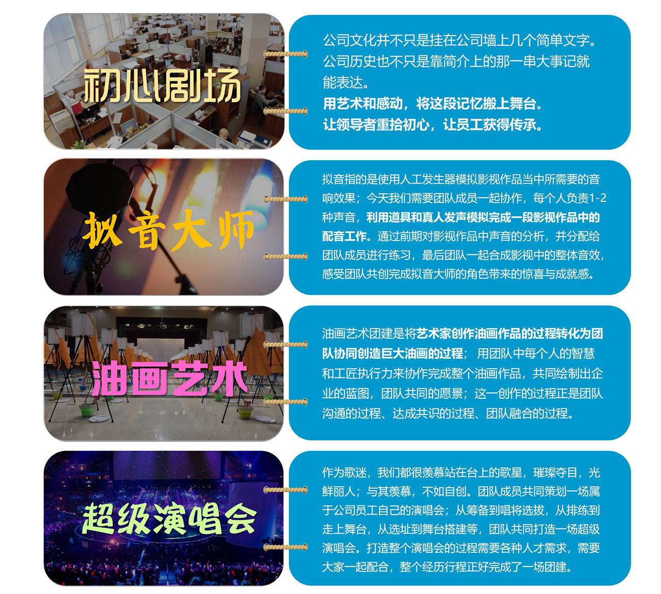 油畫藝術團建是將藝術家創作油畫作品的過程轉化為團隊協同創造巨大油畫的過程; 用團隊中每個人的智慧和工匠執行力來協作完成整個油畫作品,共同繪制出企業的藍圖,團隊共同的愿景;這一創作的過程正是團隊溝通的過程、達成共識的過程、團隊融合的過程。