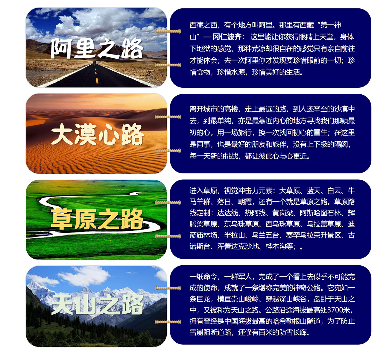 進(jìn)入草原,視覺沖擊力元素:大草原、藍(lán)天、白云、牛馬羊群、落日、朝霞,還有一個(gè)就是草原之路。草原路線定制:達(dá)達(dá)線、熱阿線、黃崗梁、阿斯哈圖石林、輝騰梁草原、東烏珠草
